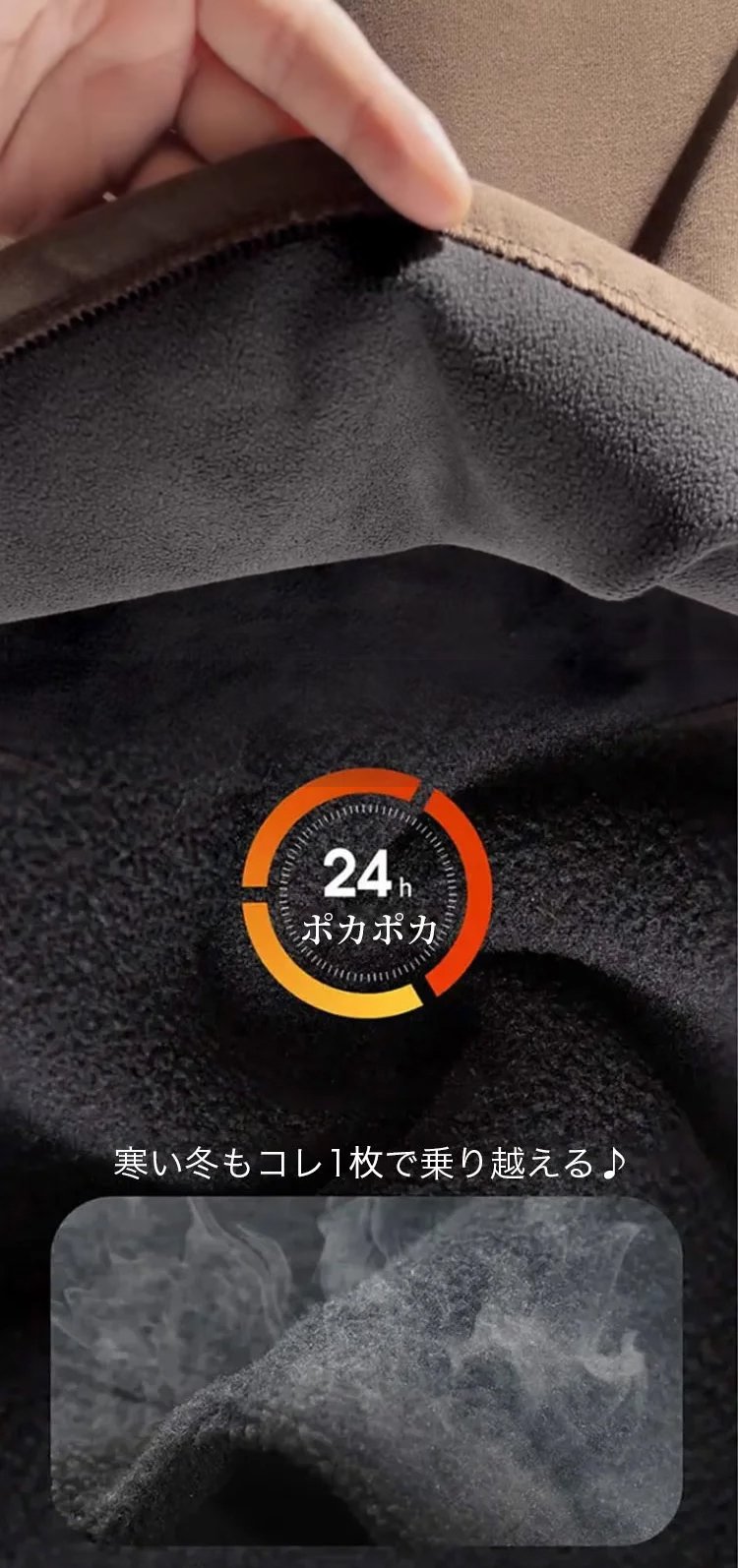 暖かい裏起毛素材のアップ画像